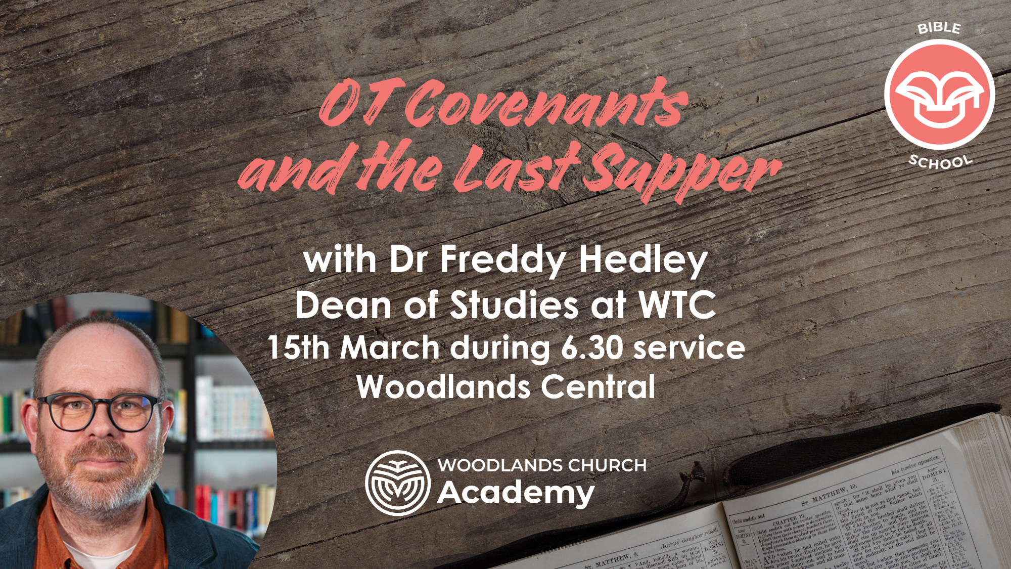 Freddy Hedley from WTC will be speaking about “OT Covenants and the Last Supper””