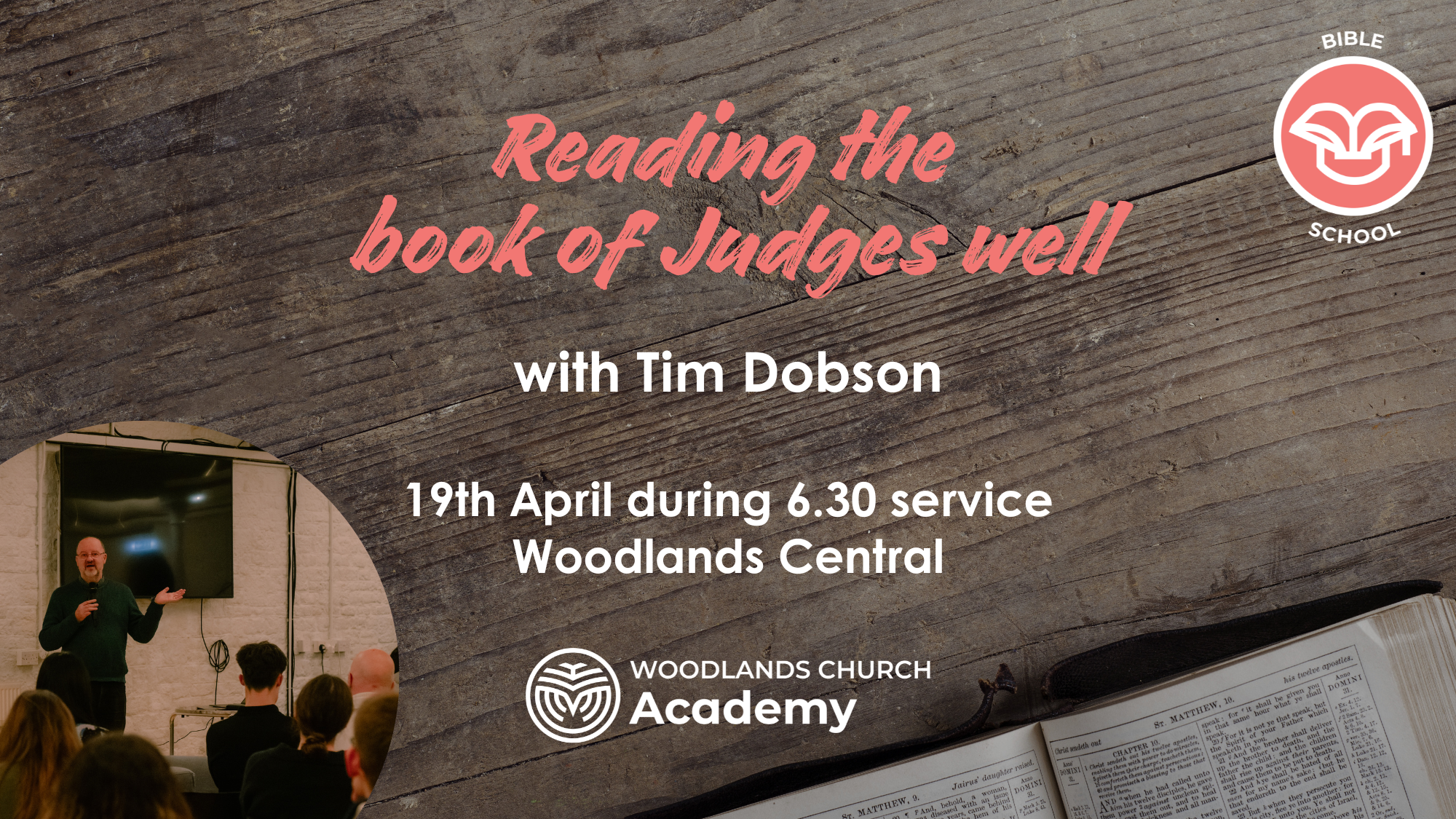 Woodlands Bible School meets once a month in The Crypt during the talk in our 6.30pm evening service. These sessions have a focus on helping people to learn how to study and understand the Bible. We often have special guest speakers and theologians join us to share their knowledge.